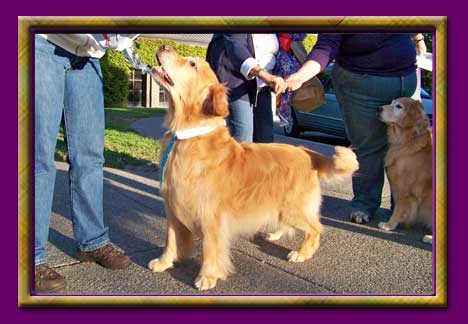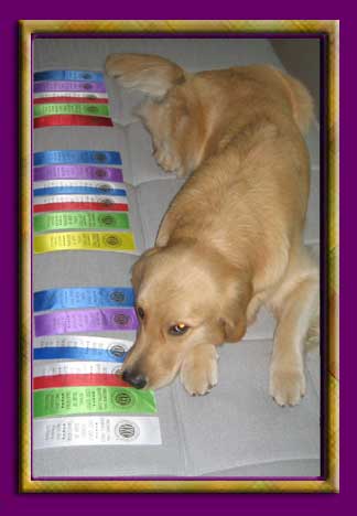 Golden Retrievers. Fred is sporting a Beginner Novice title, Companion