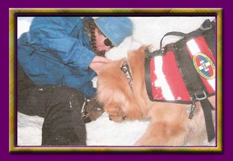 Riley, Masters Fly'n Leap, is an avalanche rescue dog, trained
